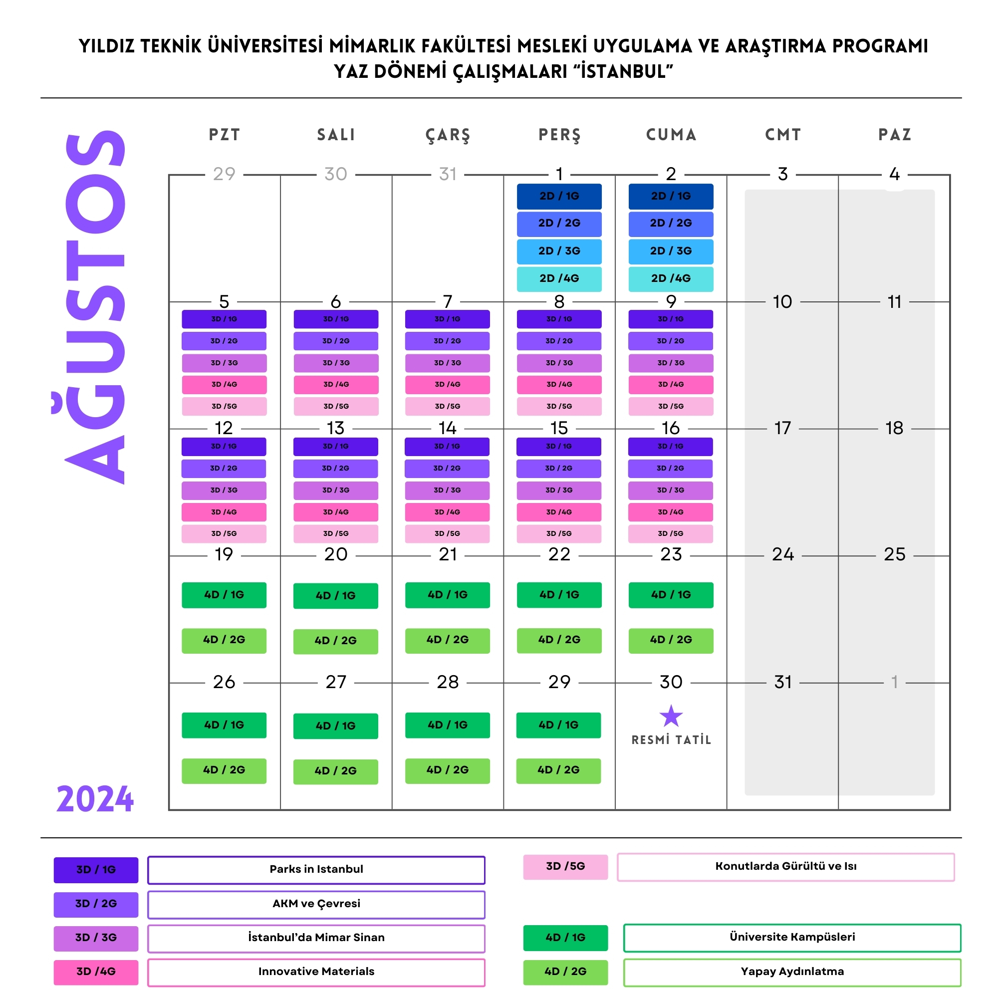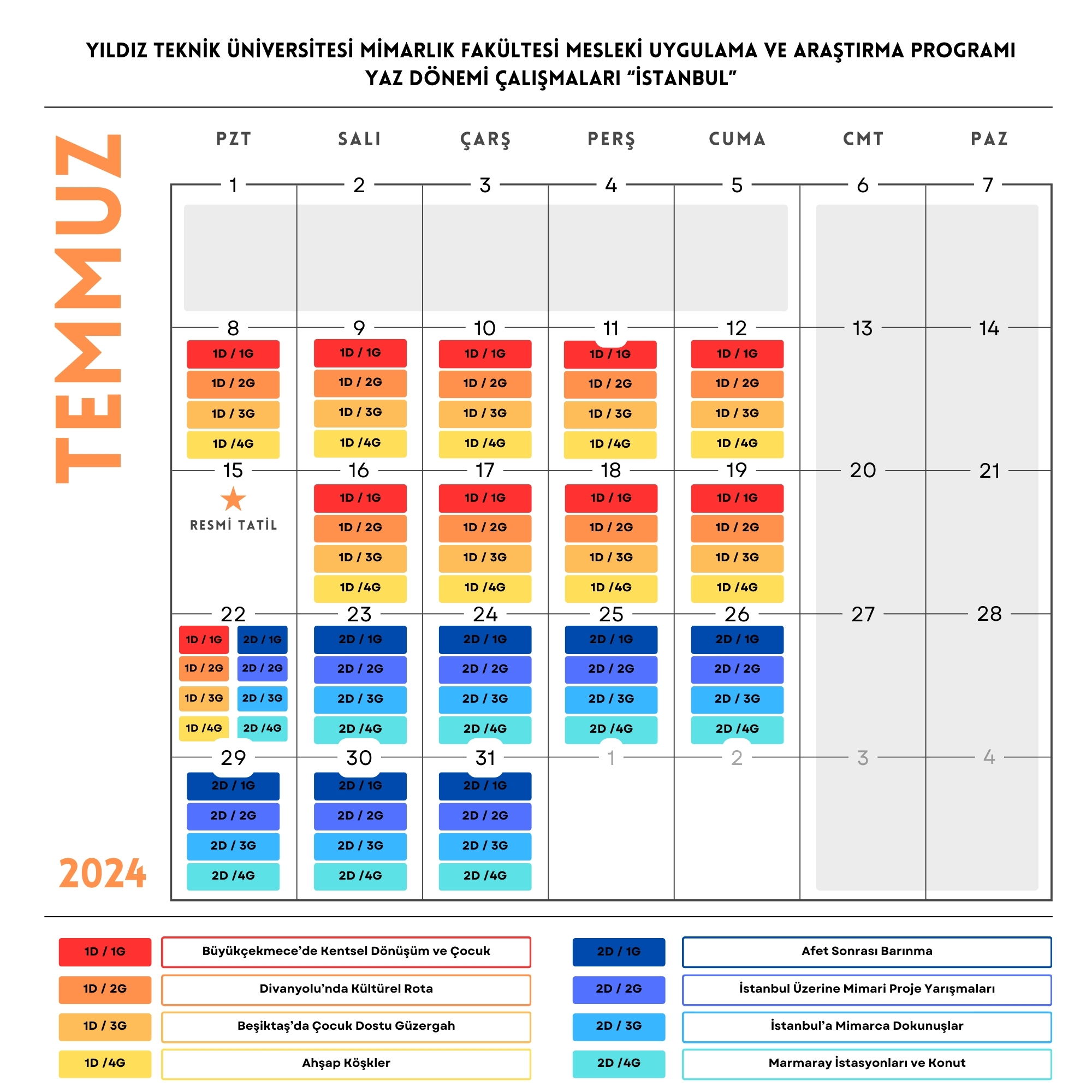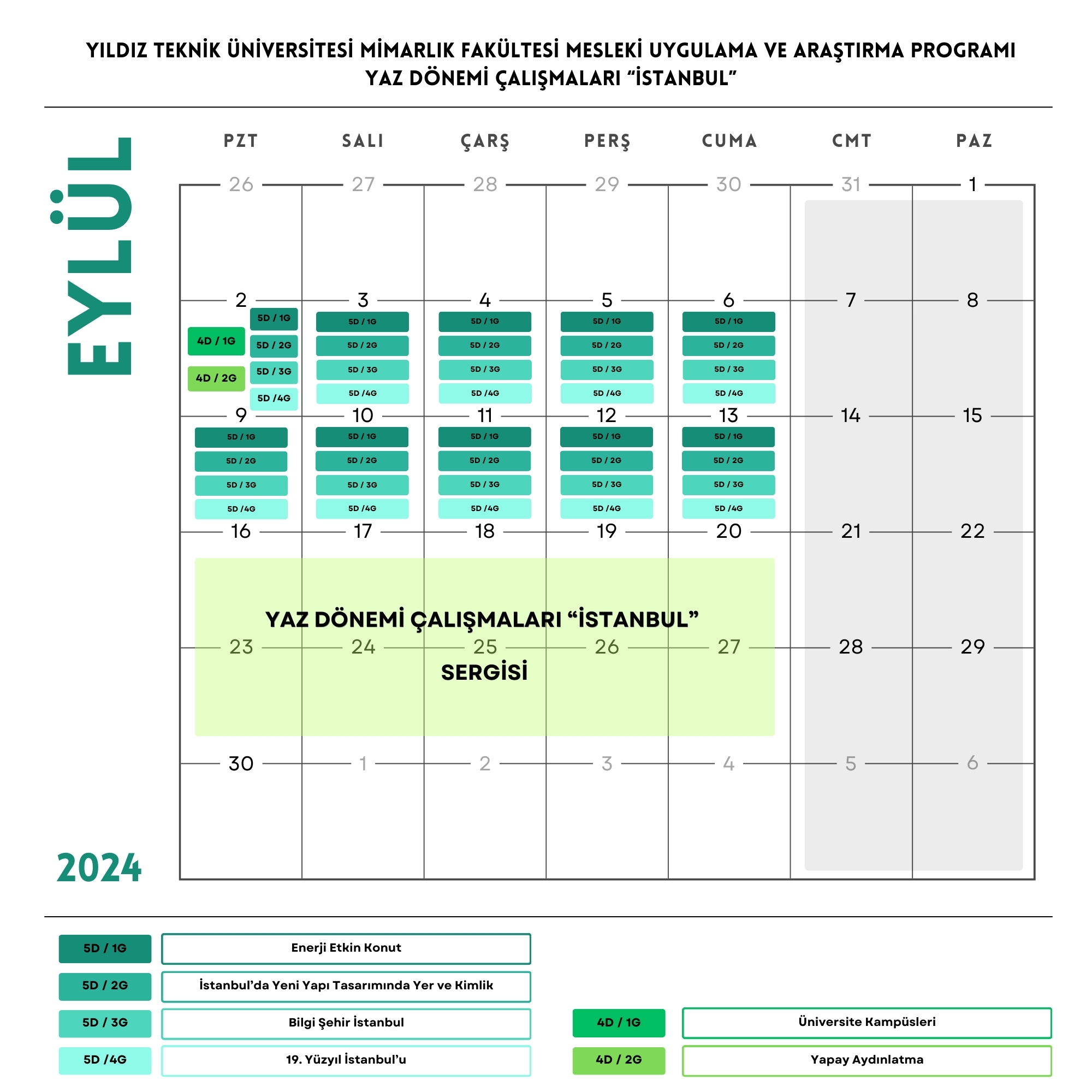 Yıldız Teknik Üniversitesi Mimarlık Fakültesi Mesleki Uygulama Ve Araştırma Programı Yaz Dönemi Çalışmaları Kitap ve Sergi sunumları ile tamamlanacaktır.